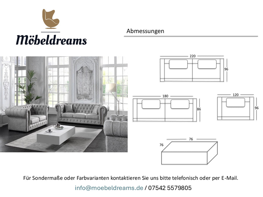 Das Chesterfield-Sofa verkörpert zeitlose Eleganz und britisches Flair. Mit seiner typischen Knopfheftung, den geschwungenen Armlehnen und der edlen Verarbeitung wird es zum stilvollen Mittelpunkt jedes Wohnraums.